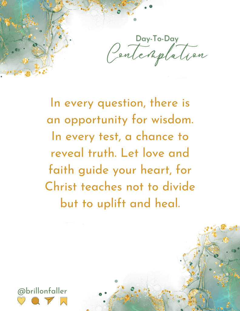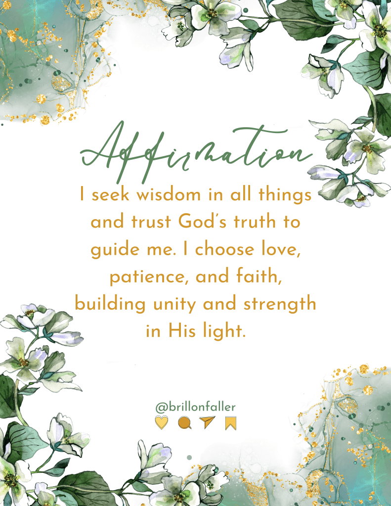 “Heavenly Father, in moments of doubt and struggle, help me seek Your wisdom instead of my own. Teach me to love as You love, to build rather than break, to heal rather than hurt, and to choose faith over fear. Guide my heart, Lord, and lead me in Your truth. Amen.”